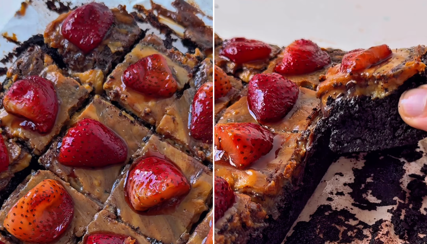 Brownie é uma daquelas receitas que quase sempre agradam, mas sempre dá para melhorar. A prova disso é o brownie com morango assado da Andressa Prato.
