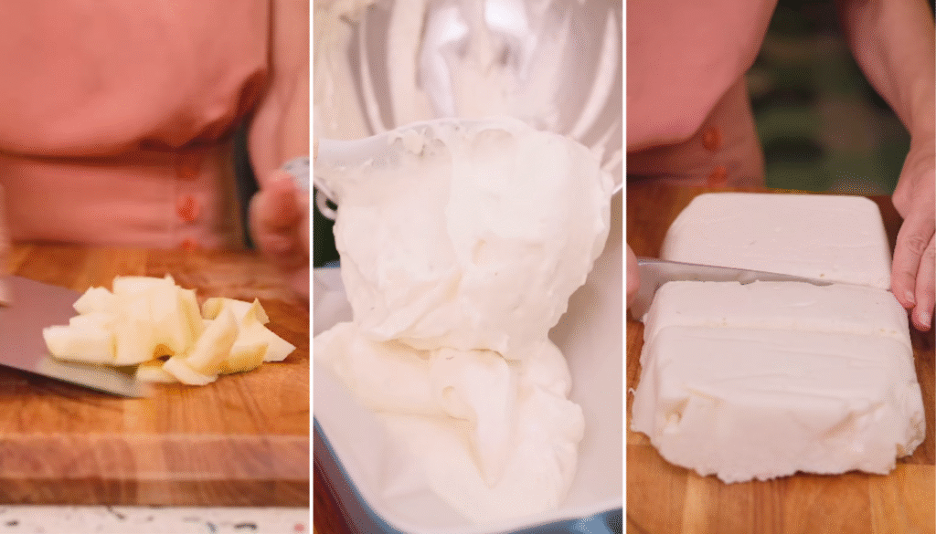 Na hora de bater, é importante ter paciência para chegar ao ponto de um marshmallow. Forre uma forma com papel dover ou plástico filme e leve para a geladeira por 5 horas. Por fim, basta desenformar e cortar. Guarde na geladeira.